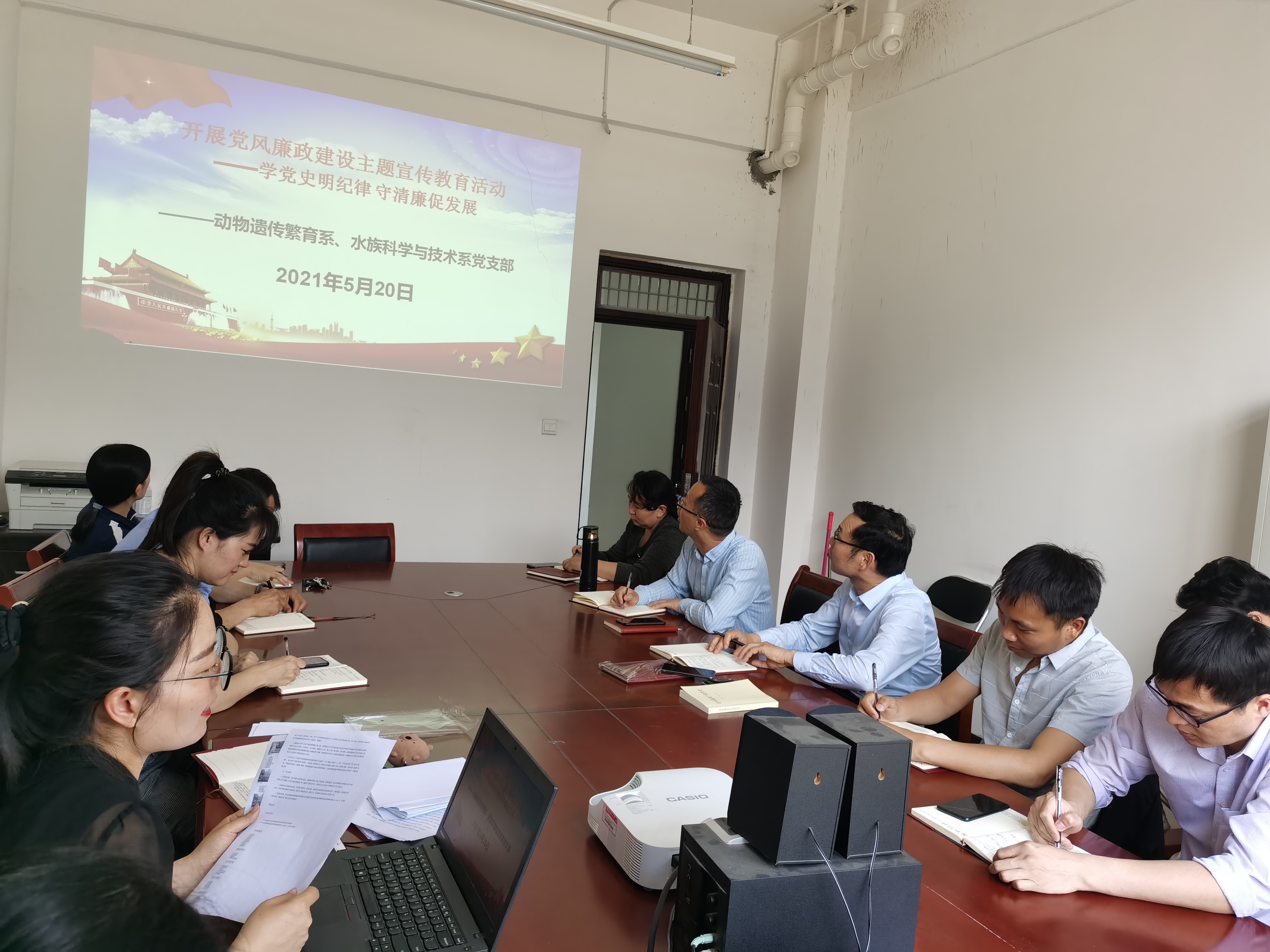 5月21日,动物遗传繁育系、水族科学与技术系党支部开展了党风廉政建设主题宣传教育活动。本次学习活动深入落实新时代全面从严治党要求,聚焦习近平总书记关于全面从严治党的一系列重要论述,聚焦党章党规党纪和国家相关法律法规,聚焦党的优良革命传统和为民务实清廉政治本色,加强师德师风教育,大力弘扬新风正气,教育引导支部同志廉思廉崇廉尚廉,努力营造风清气正的政治生态。