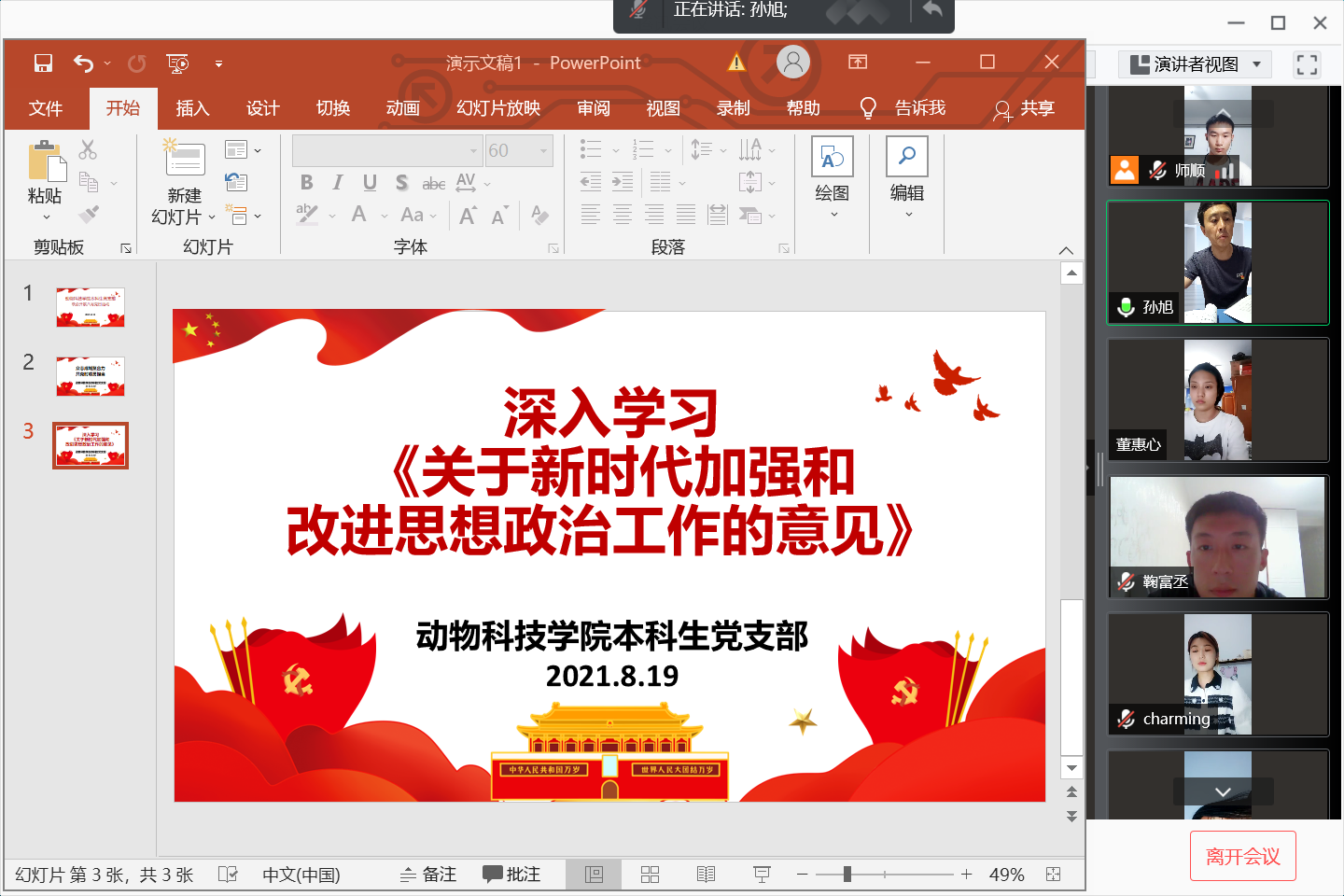 2021年8月19日晚,永利集团3044官网欢迎您本科生党支部分别开展八月分主题党日活动,该活动以腾讯会议线上视频会议的形式召开,院党委副书记孙旭出席会议,本科生各支部55名党员参加会议。