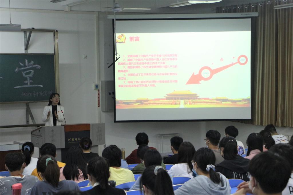 沈兰老师从一个主题、两个一百年、三个深刻改变、四个伟大成就、五个庄严宣告、九个必须和伟大建党精神这七个维度细致详尽地向同学们讲解了习近平总书记“七一”重要讲话内容中所蕴含的党史与精神力量,向同学们讲述了中国共产党从成立到新中国的诞生,再到社会主义现代化建设新时期,到如今中国特色社会主义新时代这一路上的艰辛,通过列举各时期优秀党员事例让同学们深刻体会到中国共产党一百年来,不断奋斗与求索,为广大人民开拓出如今幸福和谐生活的来之不易,激励在场学生珍惜来之不易的美好生活,克服万难,扛起责任,努力掌握专业知识,提高自己的人生目标,为做好一名合格的社会主义接班人而不断前行。现场同学们认真听讲,积极与老师互动。