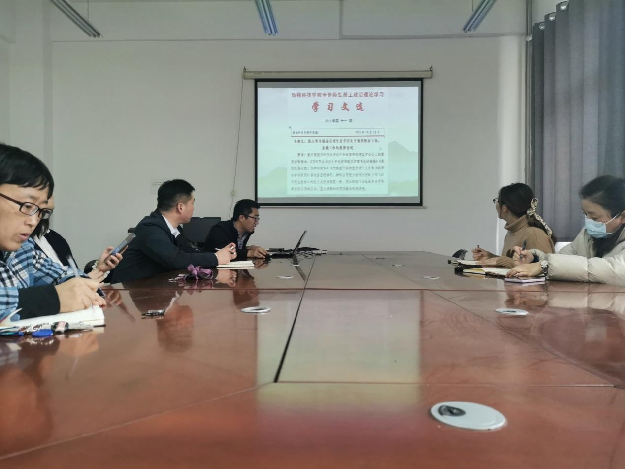 2021年10月28日下午,动物药学系党支部在农科2号楼302会议室进行10月份主题党日专项学习活动,会议主题为“凝心聚力创建‘双一流’ 奋发有为再攀新高峰”。支部全体党员参加会议,会议由支部书记杨帆同志主持。